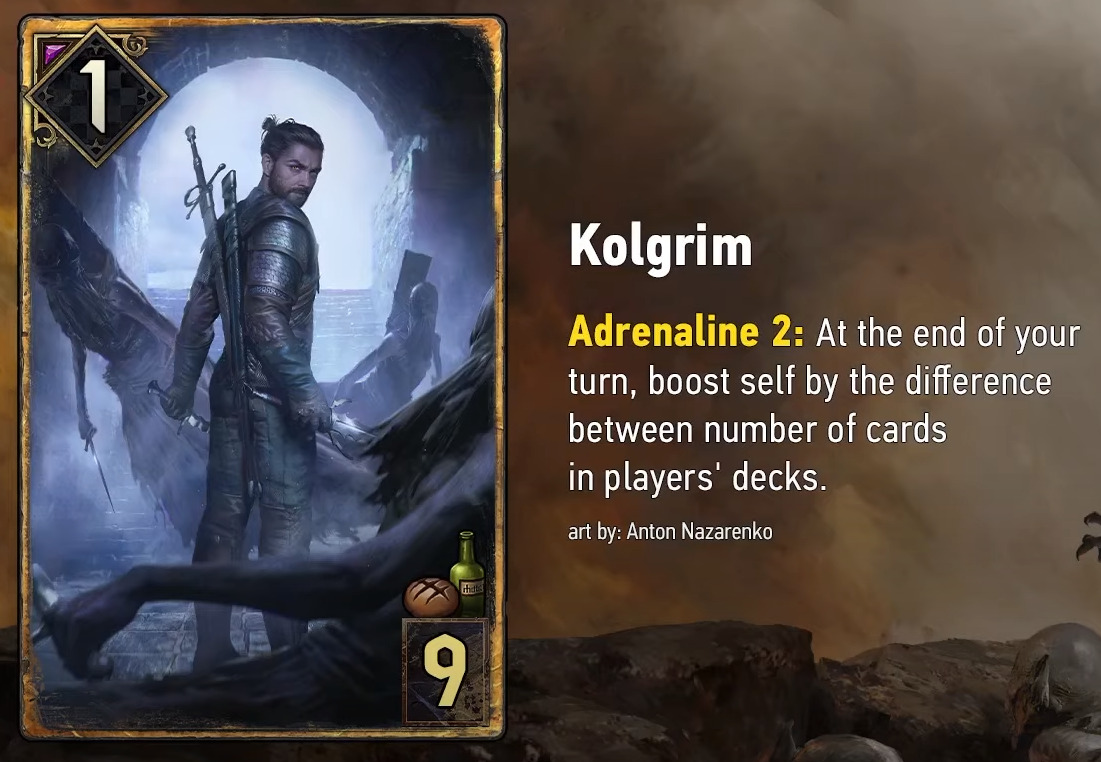 肾上腺素2:你的回合结束时,以双方玩家牌库数量之差增益自身。