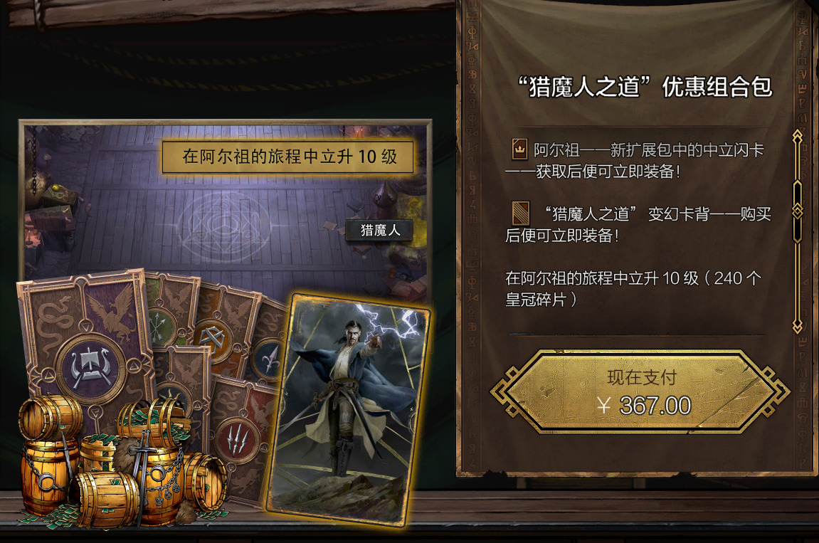 25闪桶预购包,附赠10级阿尔祖旅程等级,还有新的战场——阿尔祖的实验室。 新牌桌预购后可以立刻使用。