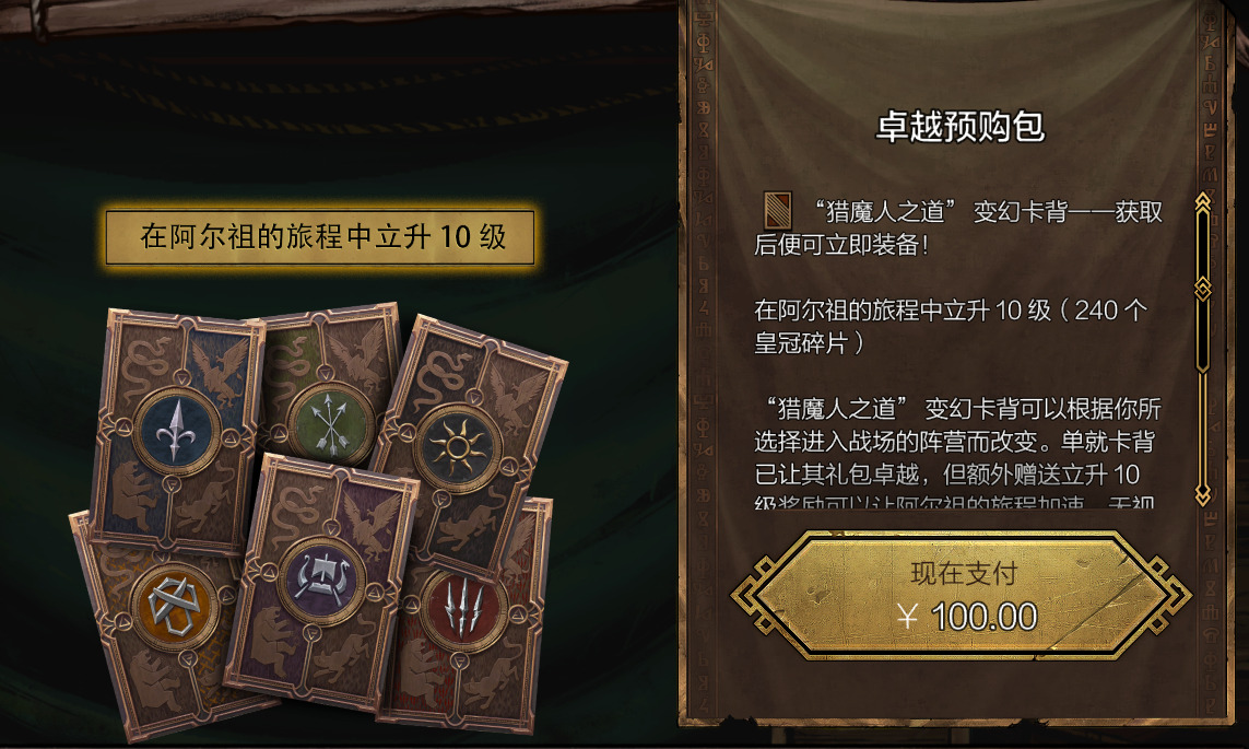 只有卡背的预购包,附赠10级阿尔祖旅程等级。