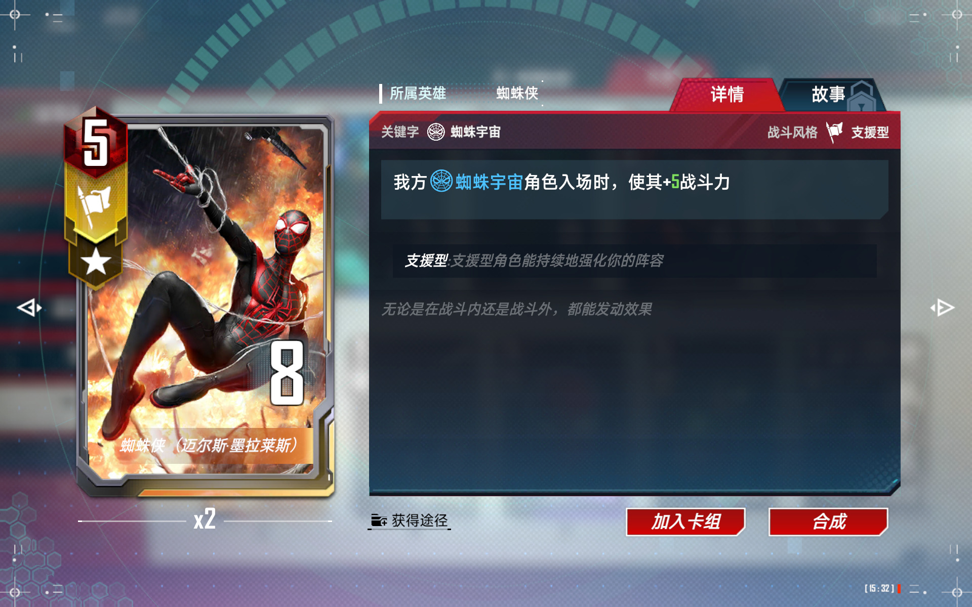 蜘蛛侠:正如之前所说,蜘蛛侠有一部分单卡和其他阵营的配合较差,但是和晕眩相关的控制单卡在竞技场里表现还不错,而且这个阵营的操作难度不大,不过想抓出很强的蜘蛛侠很难。