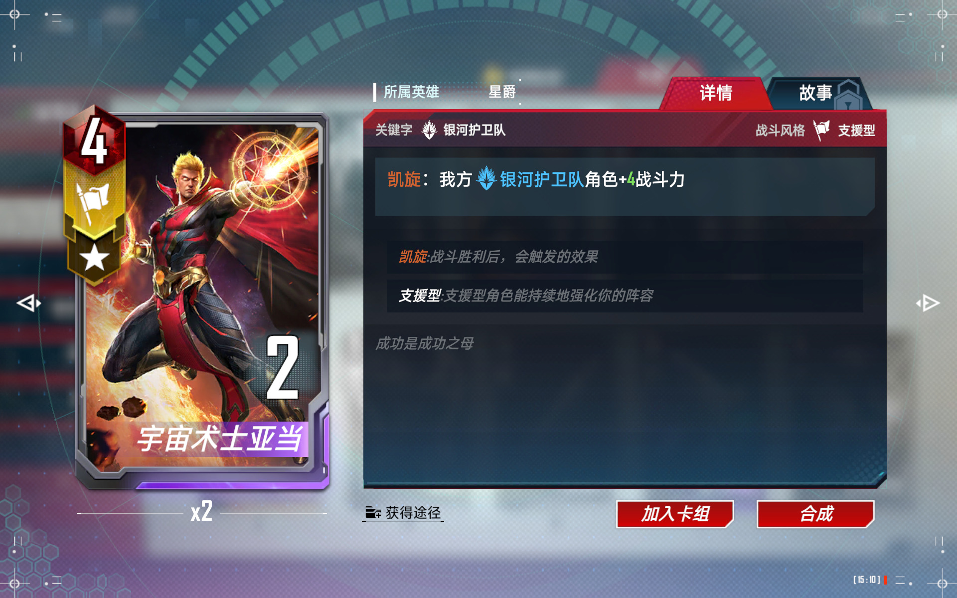 正因如此,惊奇队长能成为竞技场最常见的阵营,因为玛威尔、惊奇队长还有光谱都是这思路里非常强的橙卡,相反的,银河护卫队因为橙卡星爵、星鹰、伊戈、月龙都不是银河护卫队最主要的战力核心而在竞技场里受到冷遇。