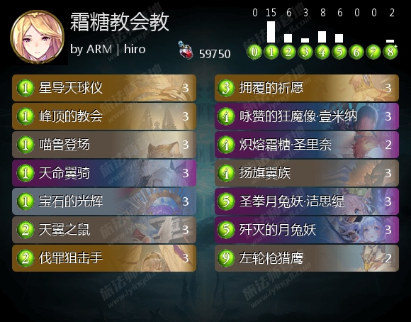 开服之后不到两个小时,ARM|hiro@minami_Tier1便在推特上晒出了自己在无限GM分段的11连胜,他所使用的卡组便是上面这套投入了歼灭的月兔妖的教会教。