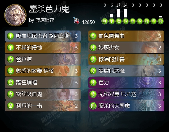 从上至下分别是:连携仇、牛仔妖、进化皇、守护教、控仇,都是老面孔了