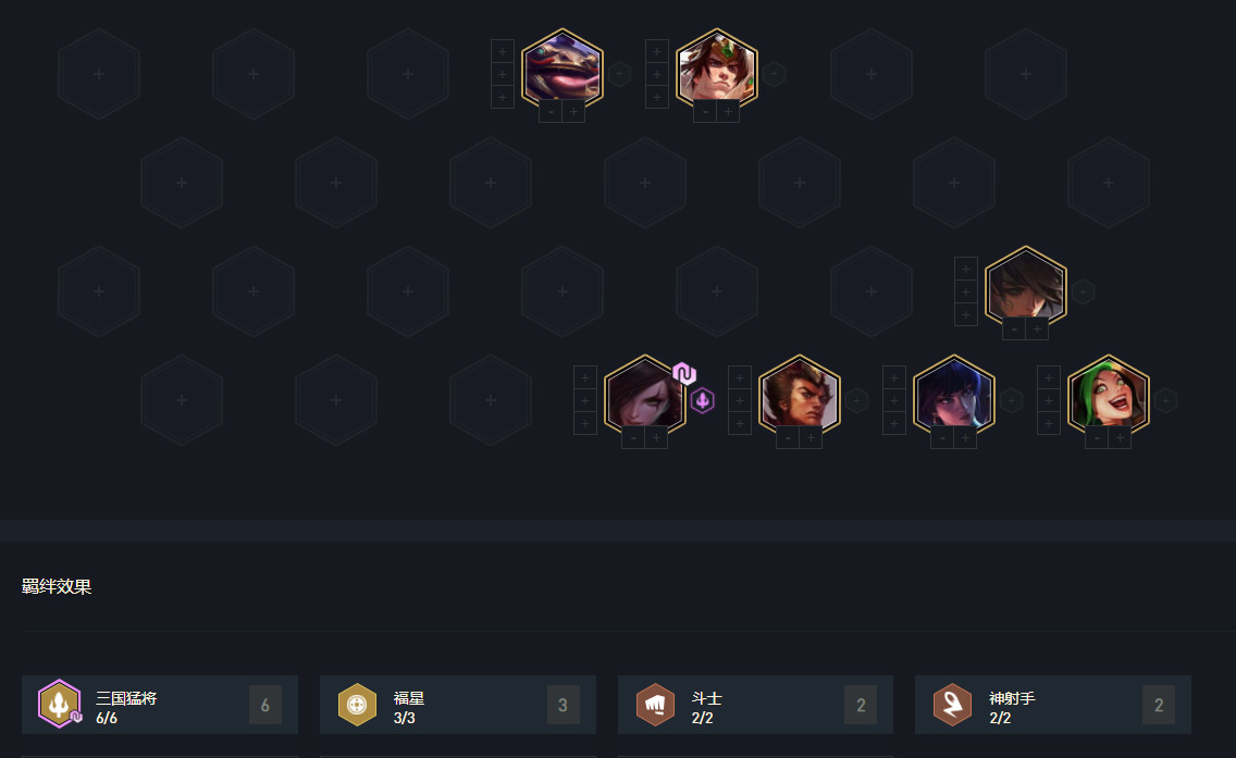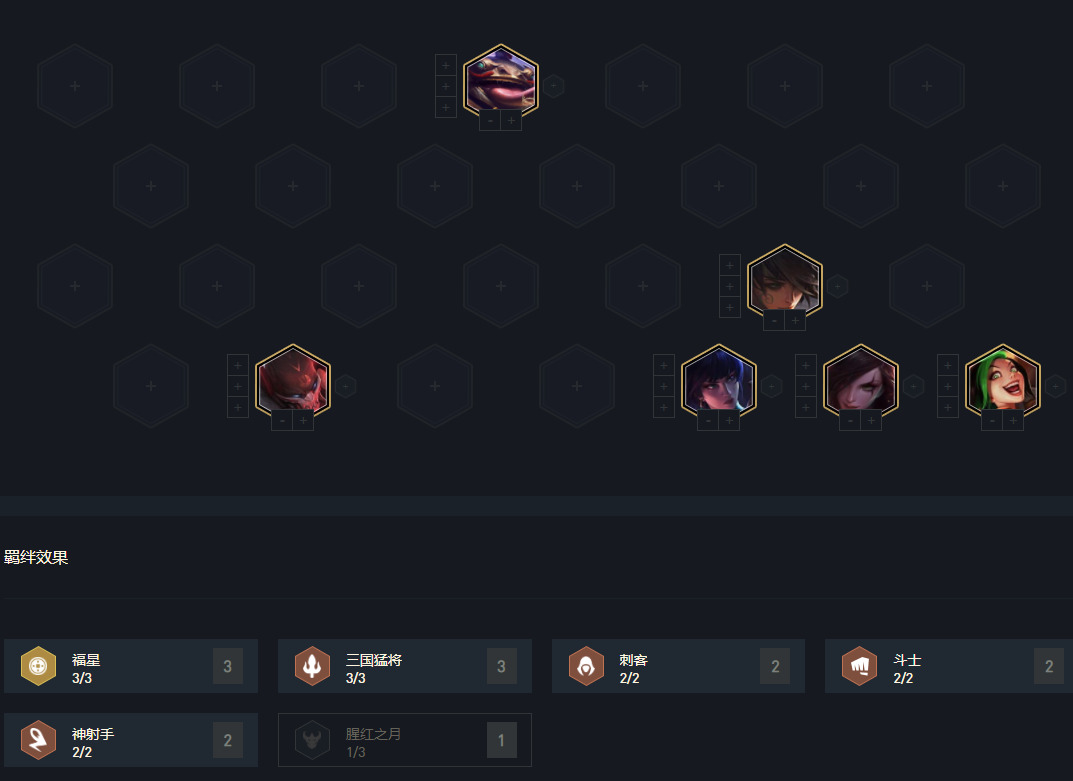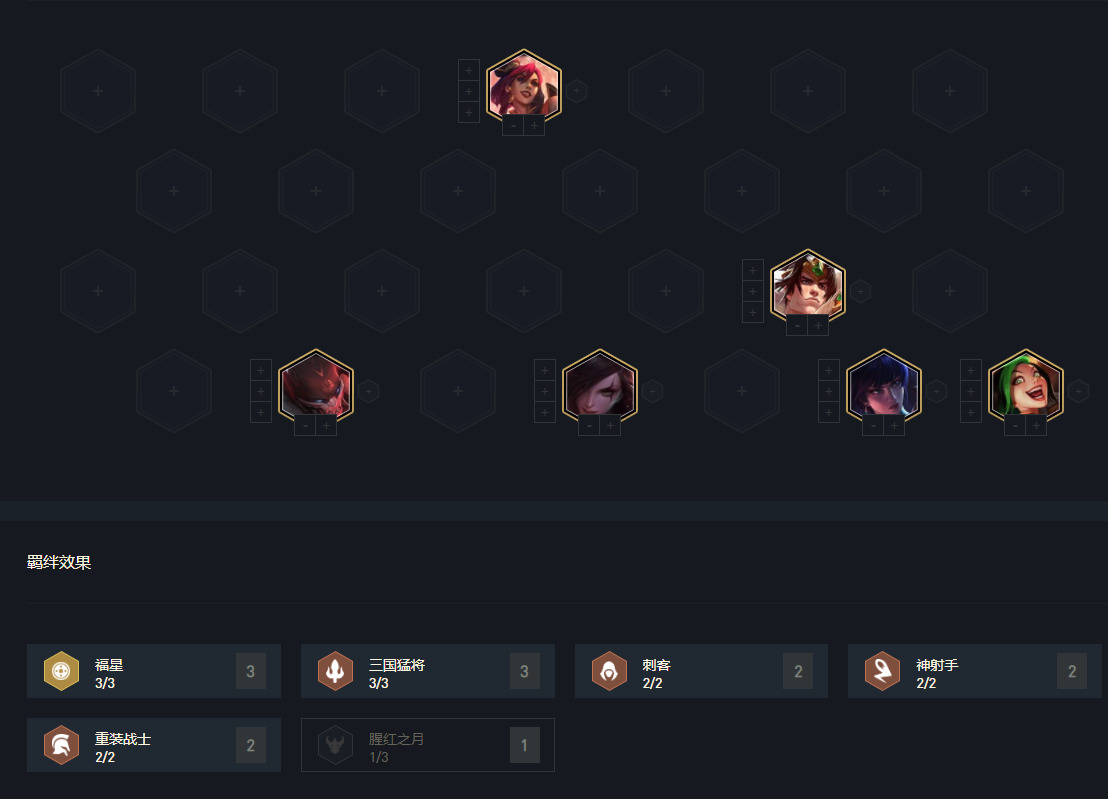有三国卡特天选最优,别的三国天选都可以一用,福星与刺客天选卡特就不要追9三国,可以走6三国双刺、双射;6三国神盾,6三国3福星均可。6三国+5费卡瑟提、永恩、李青和来的早的凯隐均可。6三国尽量挂双刺客,否则有时候就差一点点伤害。