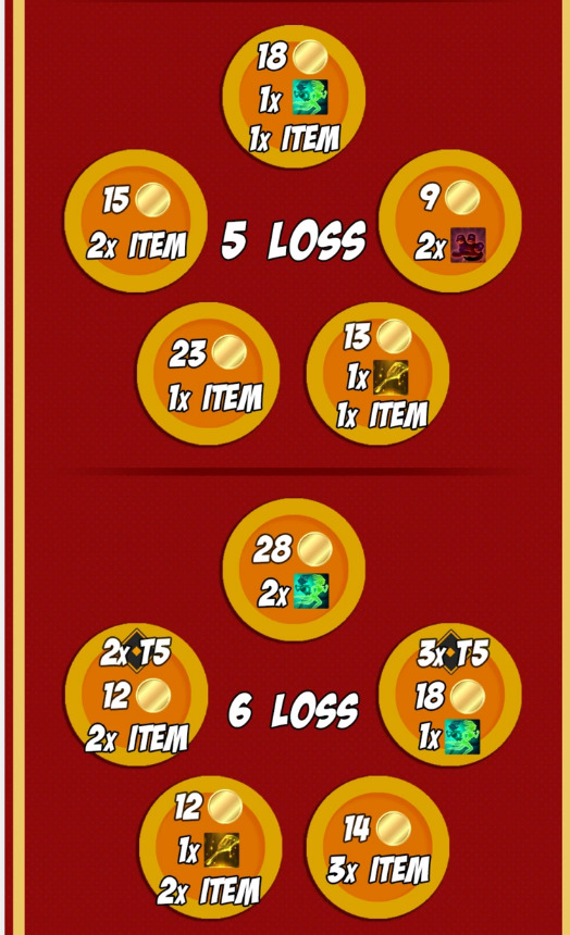 在盲盒(3福星)成型后,我们就可以考虑连败,最少需要5连败,先不上6人口,容易连败被断。通常在3-6到4-2直接开启盲盒主要看血量是否在40以下与连败数量。
