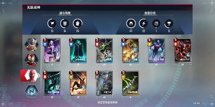 上五时机:至少有两个二星过后上五本,用【正义感召】把蛙哥和章鱼哥冲到四星。莫尔斯就位后开始拿【魔影迈尔斯】和【共生体蜘蛛侠】补齐副C位。