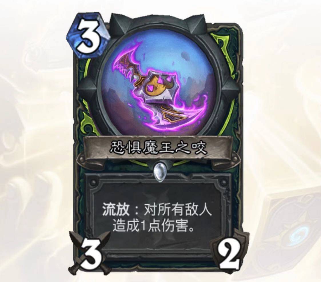 按炉石数学来计算这个牌能打出7点的伤害,打对面全体一也是抢场面的利器,刀一上送走四个鹿角小飞兔的感觉,简直了,奈斯!流放效果在快攻对局中十分强力,尽量触发,所以在前几个回合需要做好规划。