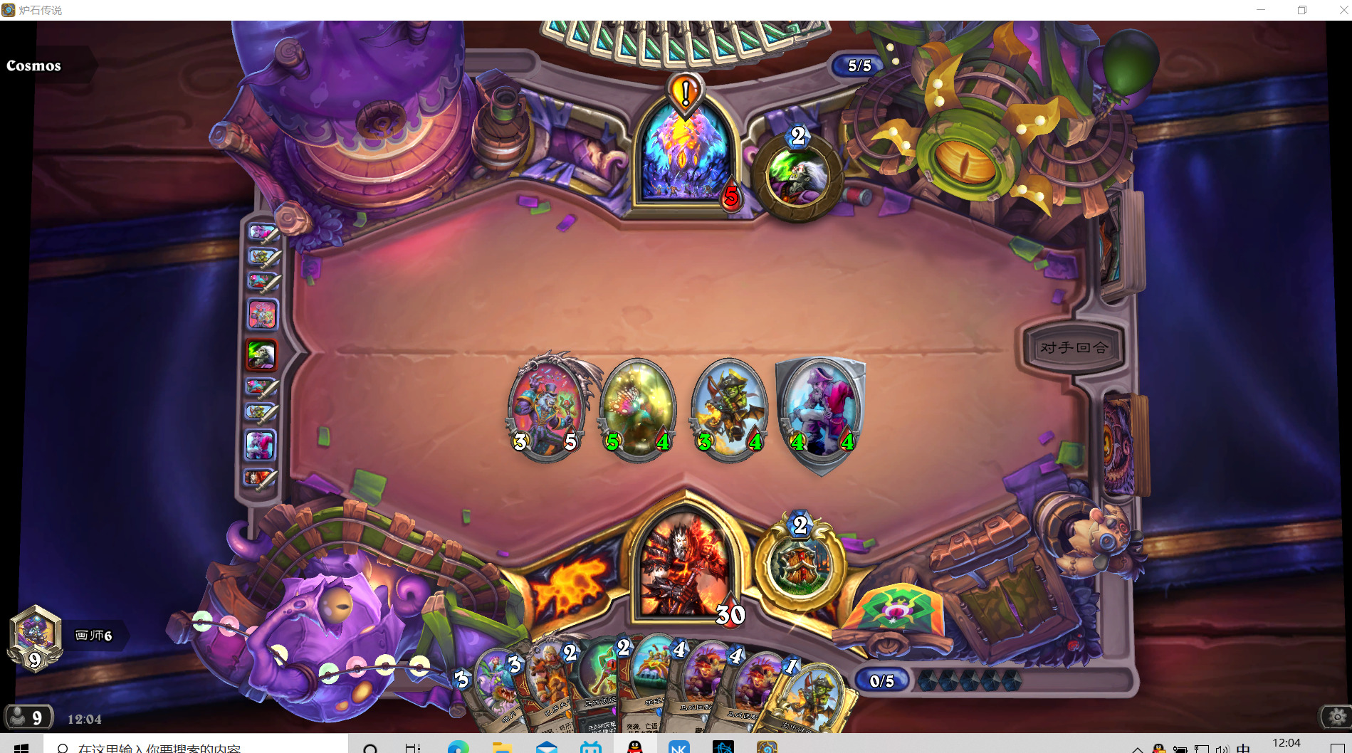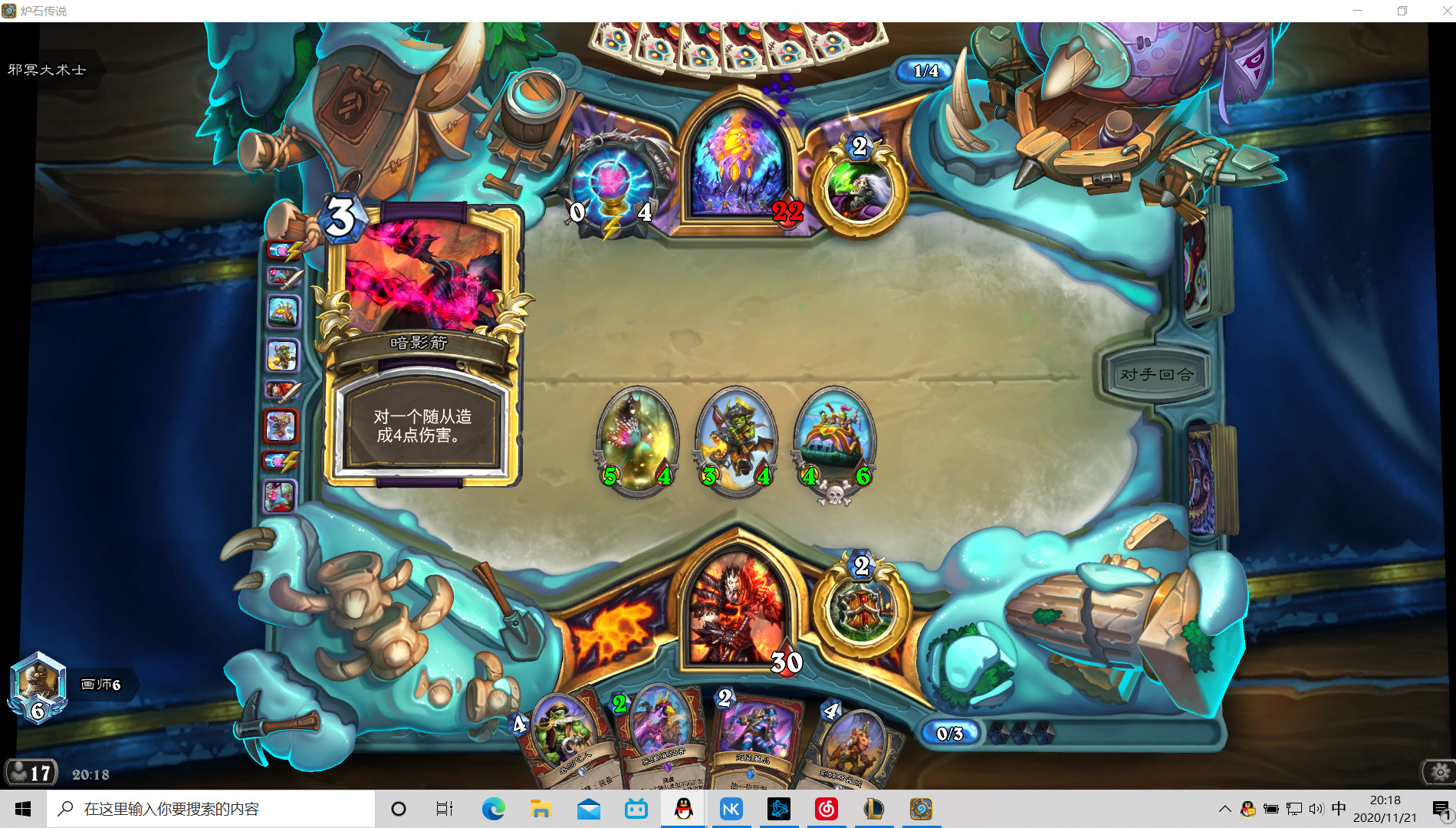 然后我来谈下很神仙的一次对局吧,那个法师开局混乱套牌,然后后面每张法术都是解牌!每一张啊!不过幸好我后面抽了个马戏领班威特利,他过牌跟不上被我打死了。