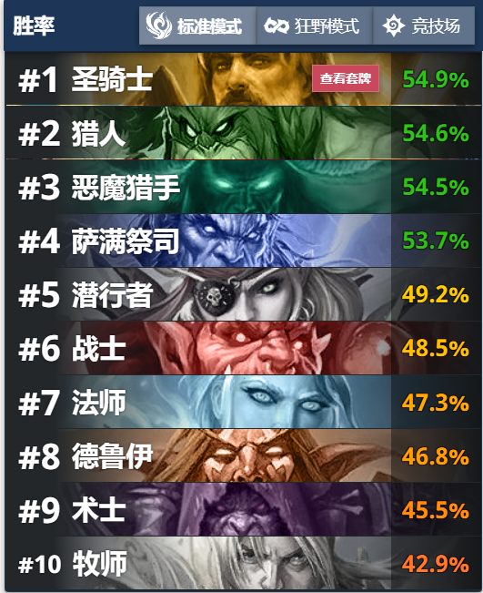 很奇怪的是,虽然圣骑士在胜率上排第一但我目前打圣骑士的局就输过一把。