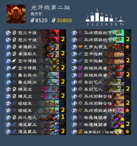 先上一下新版本的最新数据,当然讲解时不会完全依靠数据,会有点个人使用时的主观印象,当然不会影响你们浏览时的体验,主要是为了告诉你们我这里不是那么客观,不要有些客观怪来刷一些奇奇怪怪的评论。而且鱼天冬大佬的卡组和目前天梯上的战士卡组相似度很低,所以不是说第一的圣骑士就难打倒数的术士就好打这样。