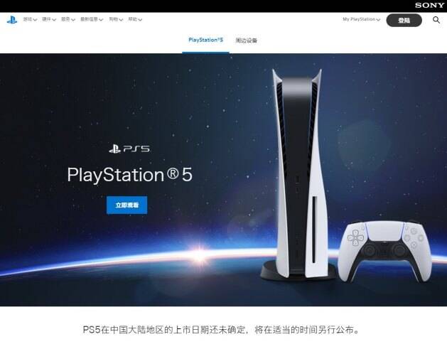 目前,PlayStation中国官网上线了PS5主机的横幅,经过两次点击跳转,会进入到PS5的专门页面。页面详细介绍了PS5的各种特性,并用一行大字标注着”PS5在中国大陆地区的上市日期还未确定,将在适当的时间另行公布“。