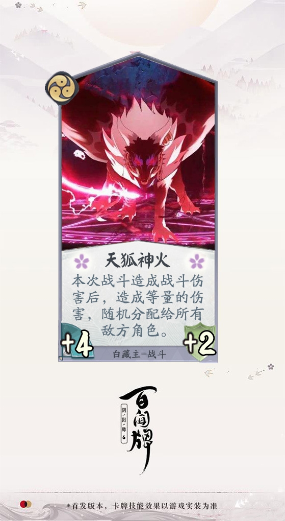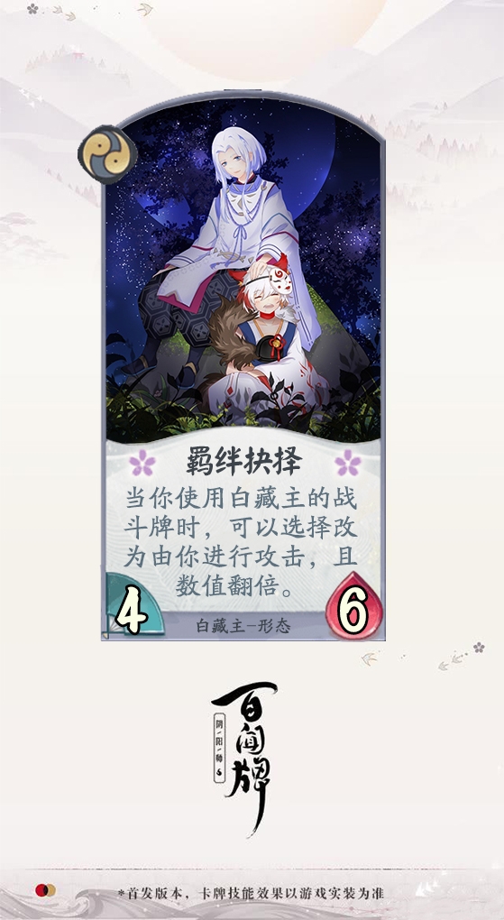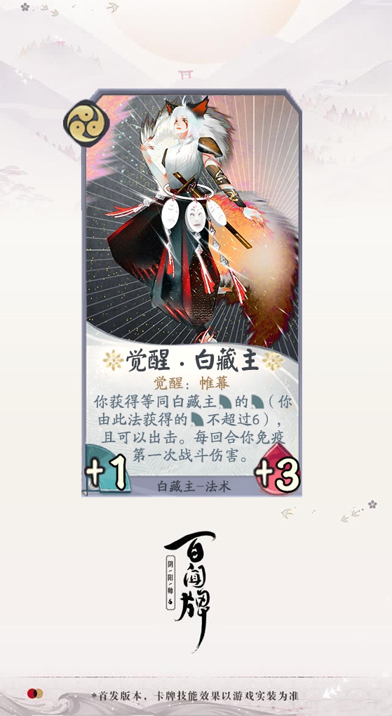 白藏主唯一的一张形态牌,也是他的核心卡牌之一。战斗牌转移到牌手发起攻击,数值翻倍,既避免了站场,又让牌手打出爆发输出。下面就来看看白藏主的战斗牌。