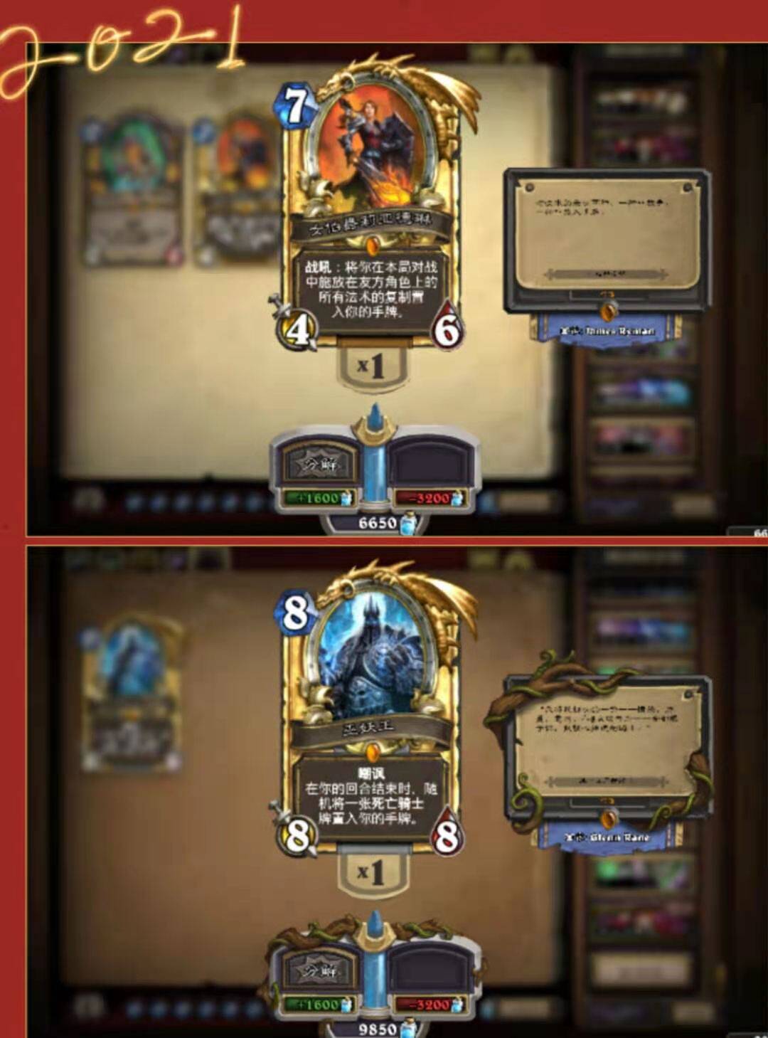 虽说利亚德林是比较早期的圣骑士皮肤,但以她为原型出的卡牌却让玩家等到了外域版本,而先于她出的便是巫妖王形态的二傻子。