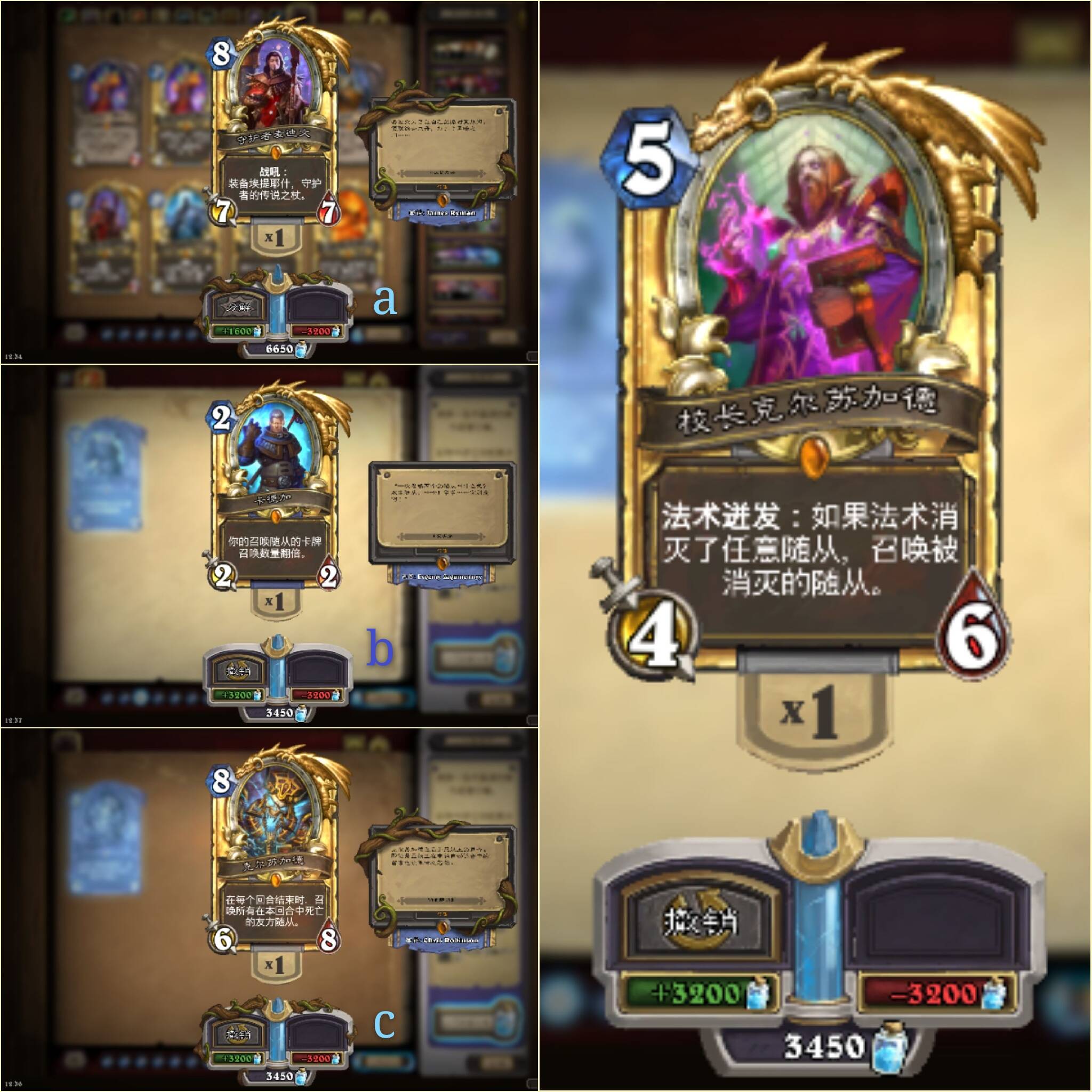 坊间有种说法叫吉安娜是暴雪亲女儿,确实,卡牌的丰富多元,卡组的百花齐放,奥秘法的长期强势,种种迹象都让人心生怀疑。到了皮肤这一块,这个传闻在我心中算是坐实了。但我也管不了那么多了,反正我七款吉安娜都齐了,火法冰法奥法想怎么玩怎么玩。八卦归八卦,总结一下额外的皮:最早一批有麦迪文,他徒弟卡德加最早作为与WWF合作项目一度绝版,还好后来玩家们在时空枢纽中找到了他,还有上个版本推出的克尔苏加德,猫奴这里就不展开了,不过也是版本跨度蛮大的一个角色,真没想到当校长了。