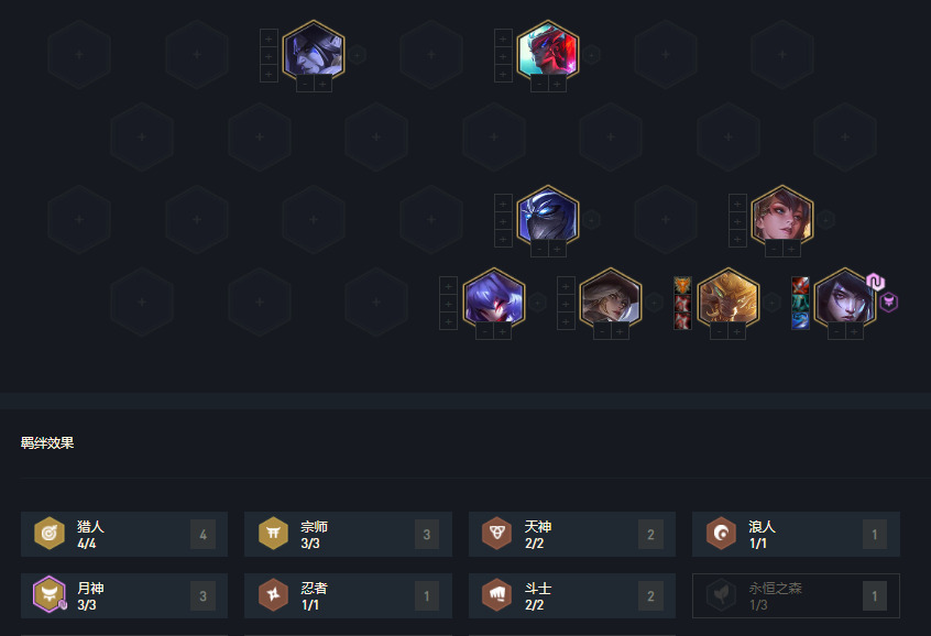 还有个思路就是月男与塞拉斯不追4星,利用前中期打出的血量与经济优势直接上9人口,转九五至尊,这里比较建议用秘术猫咪+风女+4斗+月男过度。