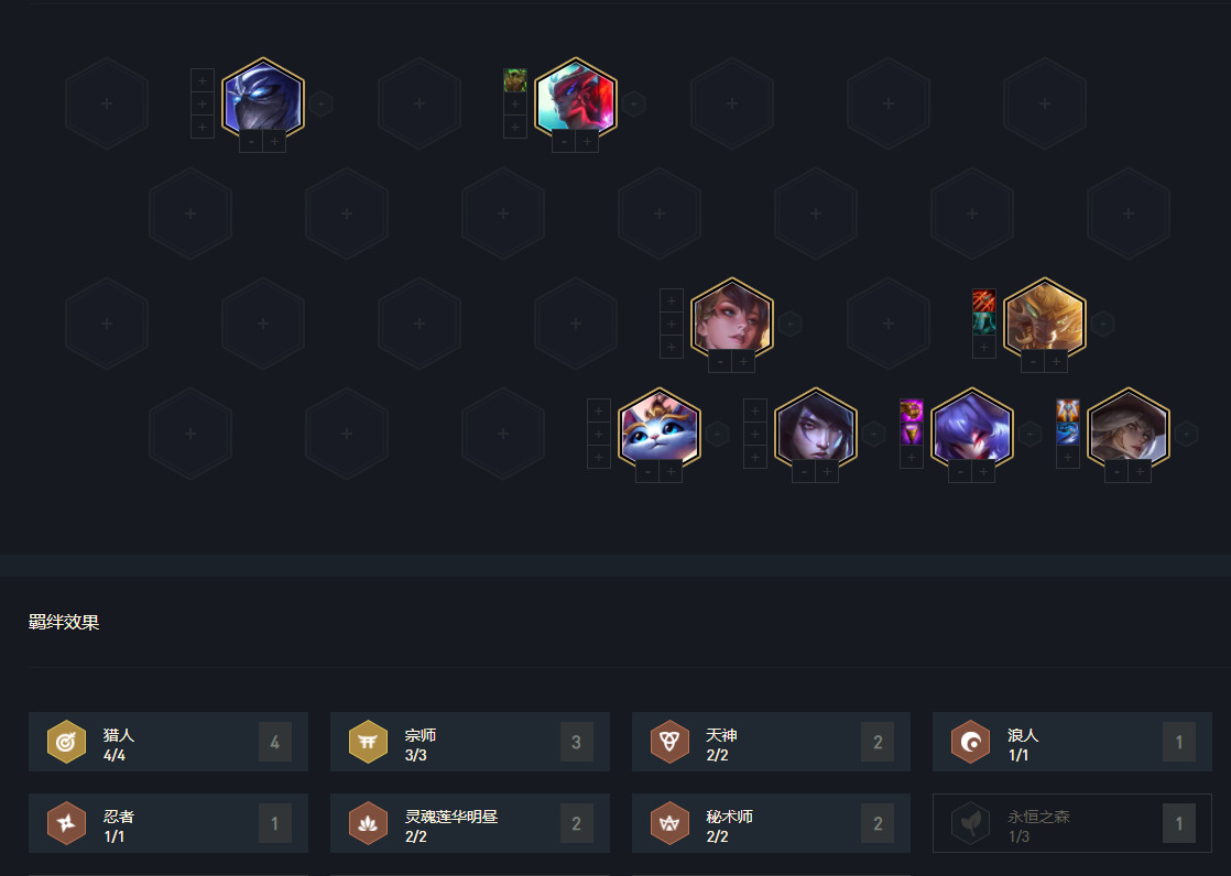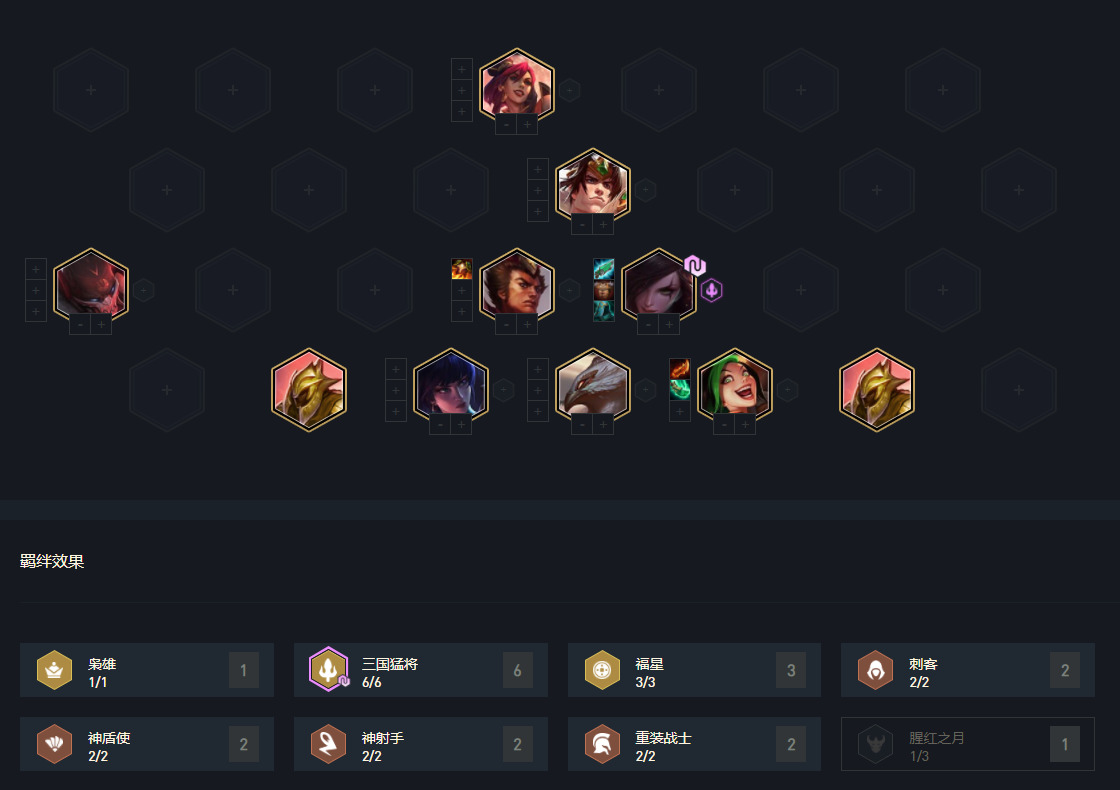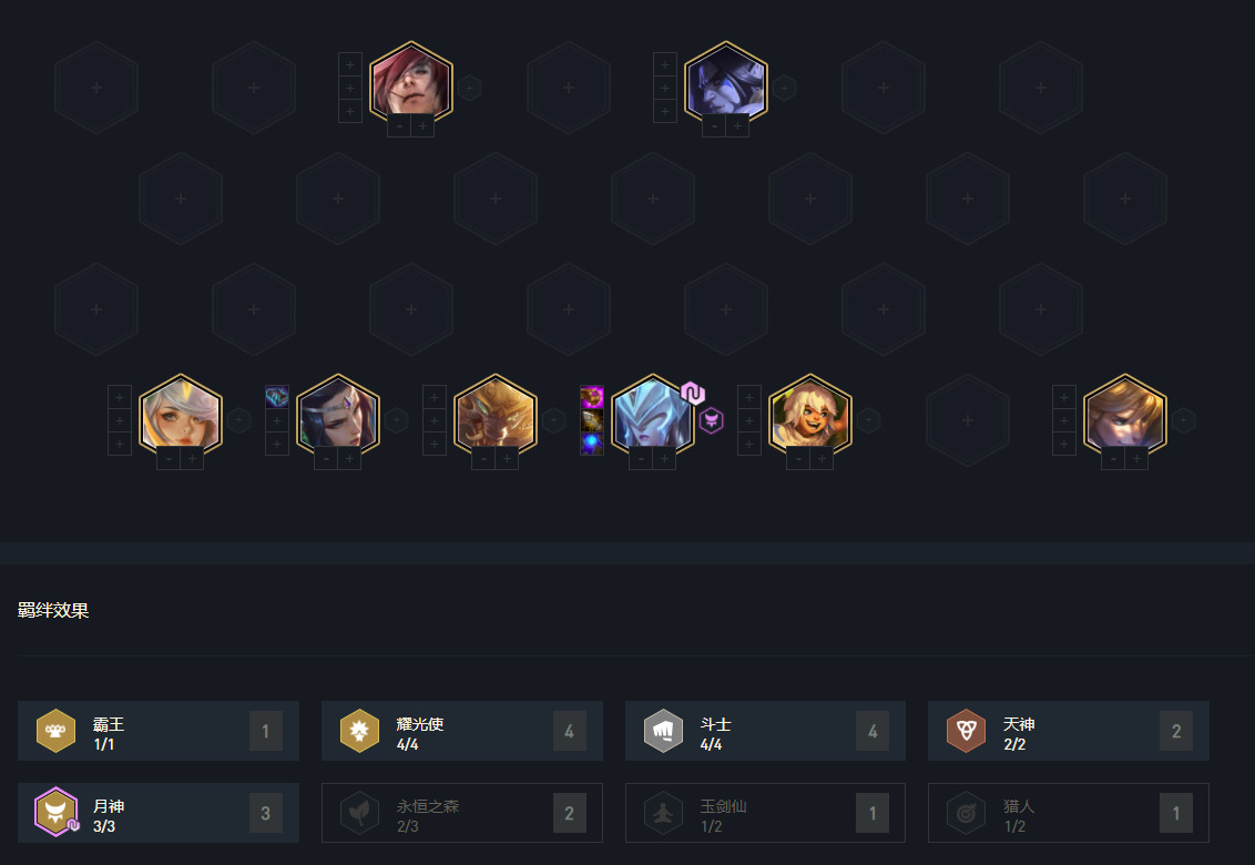 前种期赌狗阵容差不多一种就这几种,阵容强度在这版本都能有一战之力,特别是月神猎,大成后,不虚任何阵容。