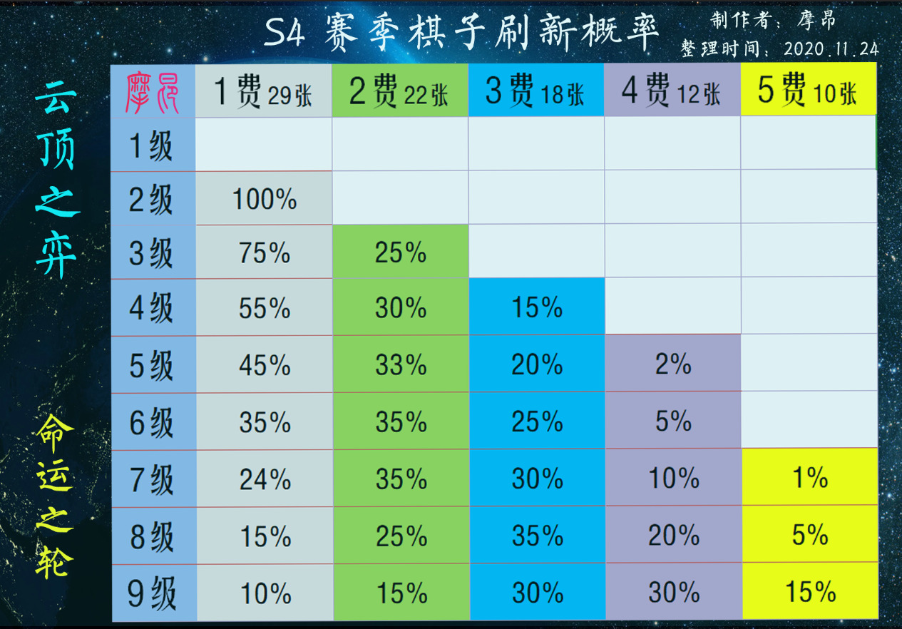 首先说的就是再7级时候天选之人与棋子刷新几率改动最大,7级是很难搜到4费卡与4费天选之人的。如果您再7级D4费卡就是一个非常错误的决定。7级搜卡更多只是小D几下更好的进行阵容变阵与增强阵容强度,4费卡为核心的阵容更需要上8人口才开始大D找寻你阵容的C位来完善你的阵容。