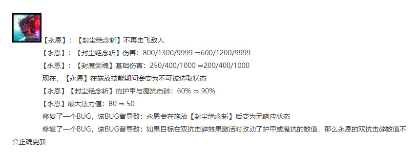 永恩技能可以造成削弱90%的护甲魔抗,持续到战斗结束,这就是说被永恩烬能挂到的棋子,基本就处于没用护甲与魔抗的状态下。大肉变脆皮,友方棋子普攻与技能攻击到被永恩技能挂上debuff的敌方棋子相当于小号的真实伤害。像重装秘术,森林阵容为什么再这版本出场率下滑严重更多就是被永恩切的。