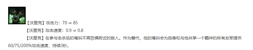 狼人技能增加与狼人自身同羁绊的攻速,这让与狼人有关的阵容强度**提升,1星狼都可以造成不俗的伤害,但更多是为大多数友方棋子提供了超高的增益。