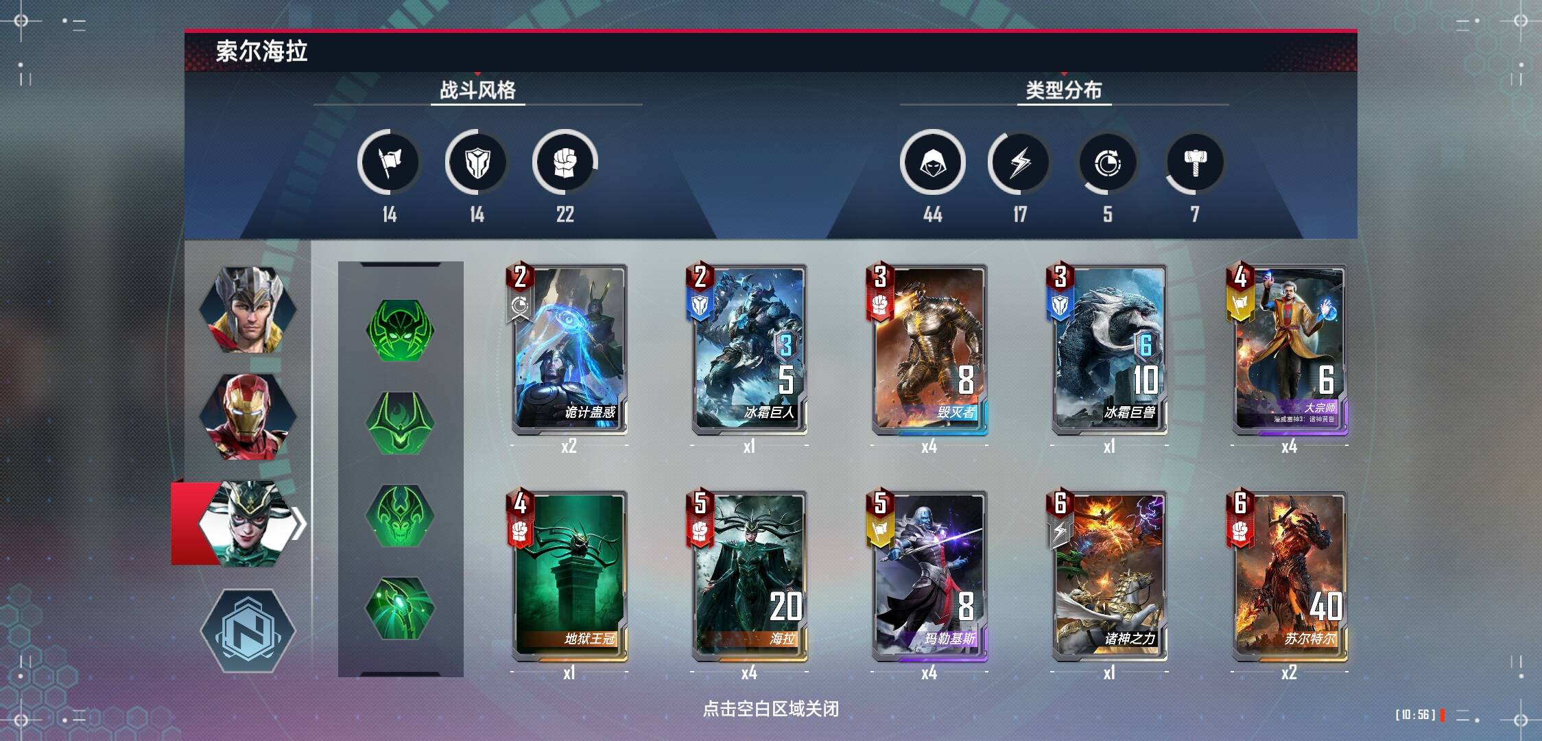 本期为各位推荐天梯主流卡组,分别为:索尔、洛基、海拉、黑寡妇、惊奇队长。卡组单卡介绍中的数量为理想数量,多或少都影响游戏体验。可能很多人有疑问,为什么很多卡只带一张,个人思路是优先快速升5级,前期不会待太久,所以这些卡带一张过渡用即可,多了前期有机会上场倒还好,后期看到只会恶心人还影响核心卡出现的概率。同时建议查看我的往期关于游戏机制的探讨,相信就会理解。