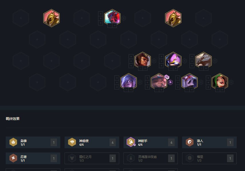 (神射还有个棋子豹女,但棋子开发度不够,与其他棋子比起来功能性偏低,但不可否认3星伤害爆炸,一个技能可带走2个棋子,但与烬的功能性重复了。)