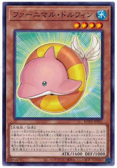 我觉得是比较关键的卡,是副葬熊罐翼体系的润滑剂,同样也是龙神鲨的素材。但是没有办法获取玩具罐的话,海豚叫不出效果。所以作为润滑剂,需要它的时候检索它就好了。如果第一波用了熊翼抽卡就再用它堆下第二个翼续航。②效果可以回收用来出2号虎鲸的魔玩具融合,只投入1枚的话就需要T1交织绵羊留场,T3或者T2再把海豚苏上来去当做融合素材。