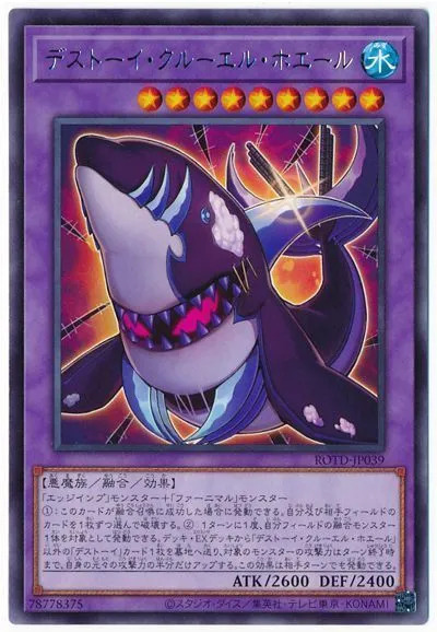 对面回合的手坑融合,配合企鹅可以在对面回合调度资源,很劲。出虎鲸炸卡可以当做阻抗,比如打十二兽或者调皮,虎鲸通过对面就很伤了。但是墓地有虎鲸也会中墓指。代破也可以防激流之类的坑。但是检索手段只有补缀。