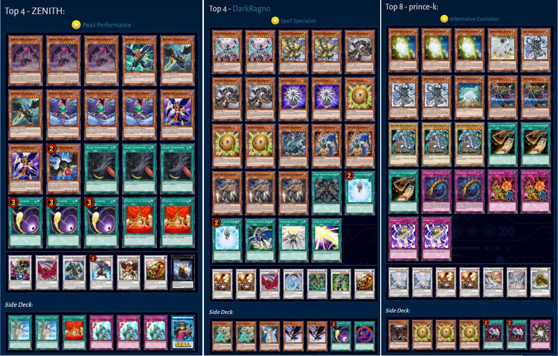 白龙卡组参赛数量位居第二总计14套,枪龙卡组11套,黑羽与魔女术卡组均为9套,最终仅有1套魔女术卡组杀入32强,无论