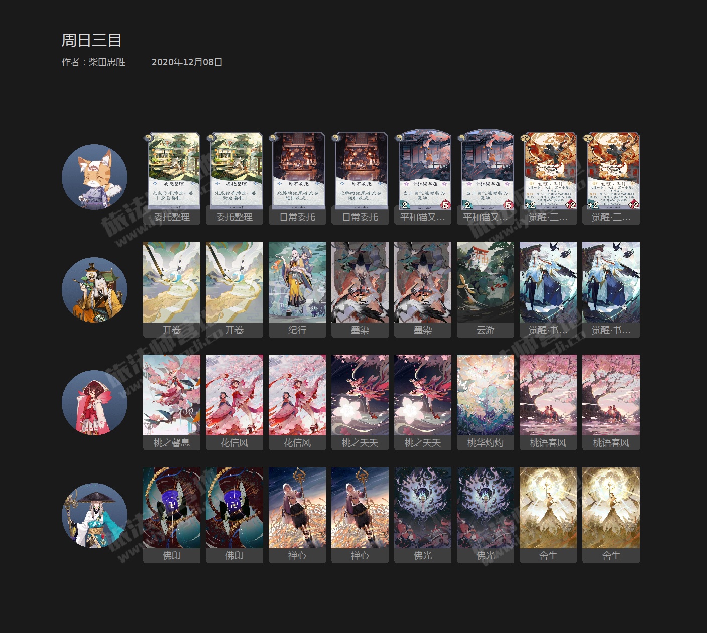 大家好,这里是快乐卡组研究大师咸鱼柴田忠胜,柴宝。在三目揭露日常委托有七种效果的时候,我就有构筑七个卡组的思路。不过目前看来,所有七种思路中,只有周日的卡组是兼具快乐和强度与一体的,且三目也是其中极为重要的组成部分,配合良好,是我最推荐的。我还记得S1统治天梯的书翁卡组,构筑是书翁+妖琴师+萤草+青坊主。也有携带判官的变种。后来在妖琴师和萤草接连遭遇削弱的情况下没落。而现在三目可以复刻当初妖琴师萤草的爆发过牌,是否可以重铸辉煌?