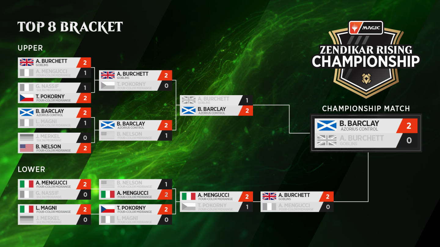 本次赞迪卡再起冠军赛的Day3依然是赛制为双败的八强赛,下面是八位牌手的史迹套牌: