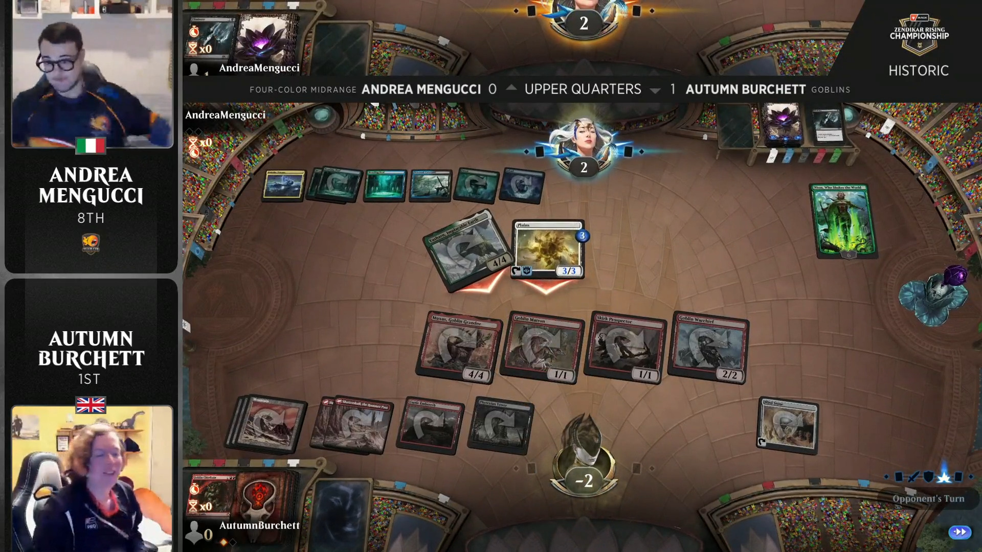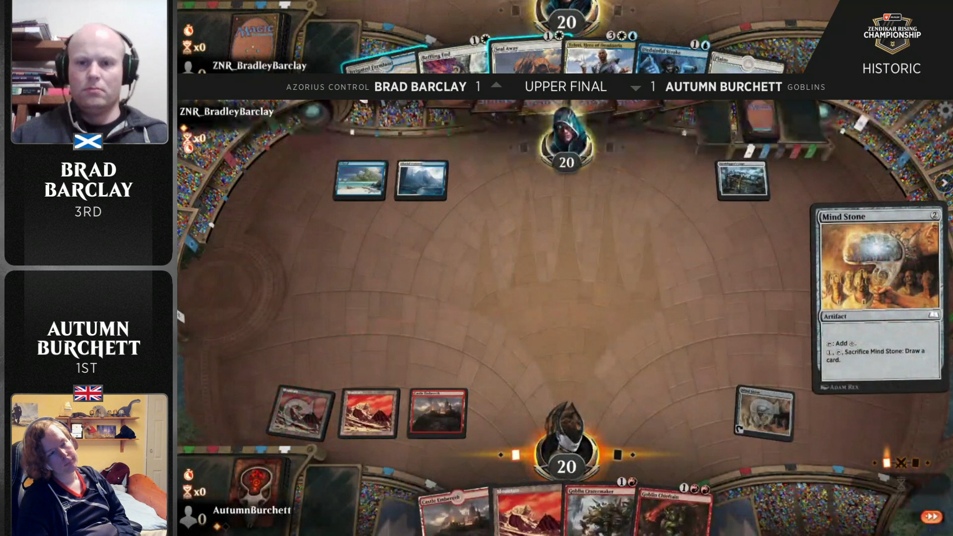 鬼怪的秋天姐和使用白蓝控的Brad Barclay再度在决赛相遇,大不列颠岛终究只能有一人获得这次的胜利。虽然我们吹了一文的先锋号角,但这个能被斥逐掉的赚牌引擎并不能100%为秋天姐带来胜利:整整5局中,秋天姐在结算先锋号角后,一张牌没赚到就被斥逐当回合扣走了。Brad Barclay 使用的是较为复古的白蓝控,后期能力强,反而打秋天姐这种不快的鬼怪更占优势。