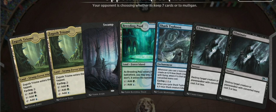 虽然Brad Nelson的知名度高他的对手好几截,但这场比赛的表现却着实有些强差人意。主牌局调度到5输掉后,他在备牌局又调度一次,所幸的是对手也很给面子的调度到5将比分打成1-1。在决胜局,Brad Nelson或许是调度怕了,keep了如下的起手: