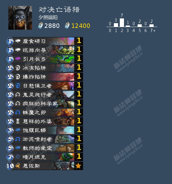 亡语猎也是难得的越打越强的卡组,最好是多抓低费亡语,蛛魔之卵是最佳的选择,跳币下了之后对面也很难办。当然核心是最好是第一个宝藏出现回收,第二个宝藏出现亡者图腾或者木乃伊魔法。抓牌方面猎人可选择的方向很多补充低费亡语,补充解牌都是很好的选择。选到回收+木乃伊魔法也是一个12胜组合。猎人的缺点是下限太低了。一旦前期不行,很容易直接0-3滚粗了,第二个宝藏都见不到。但是后期真的是最强的站场卡组,强度远胜过啮食+沼泽诅咒这种万能铺场组合(虽然这个组合遇到德鲁伊和瞎子基本上没法打)。