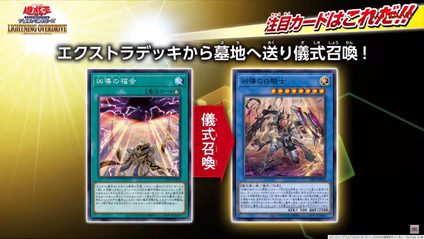 凶导之白骑士 魔法师族/仪式/效果 光/8星 500/2500 「凶导之福音」降临。这个卡名的②的效果1回合只能使用1次。 ①:只要这张卡在怪兽区域存在,自己不能从额外卡组把怪兽特殊召唤。 ②:对方把魔法·陷阱·怪兽的效果发动的场合才能发动。从自己的额外卡组把1只怪兽送去墓地。确认对方的额外卡组,选那之内的1只怪兽送去墓地。这张卡的攻击力直到回合结束时上升送去墓地的怪兽的攻击力合计数值的一半。 #是「教导」卡