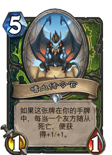 除此之外还有大哥体系,杂毛体系怎么能少了海巨人大哥呢,满上。杂毛体系怎么能少了嗜血传令官大哥呢,满上。特别说一下嗜血传令官,我们的杂毛能使它变为一个非常吓人的身材,一脚踢脸上直接踢死的那种。对阵没有解牌的职业简直让对面欲哭无泪(对,说的就是你,德鲁伊),在对阵德鲁伊时效果极佳。对面的嘲讽也挡不住我们的突袭+怒鳞纳迦。经常直接踢死。