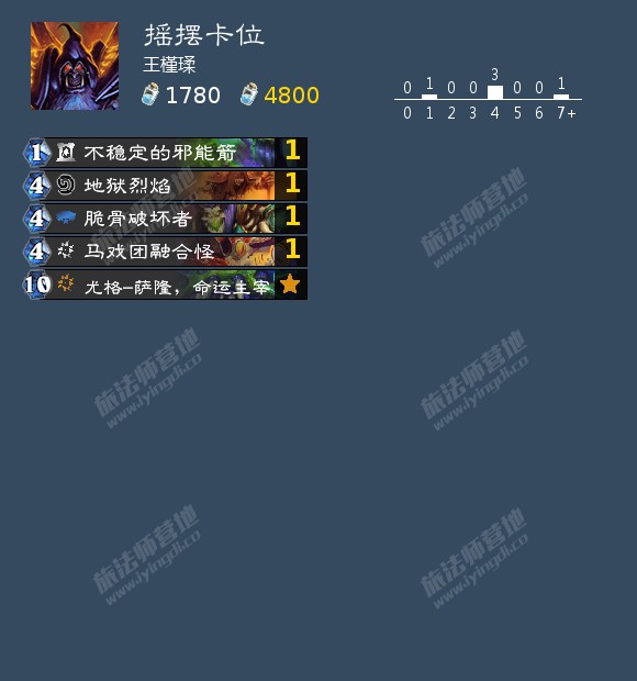 不稳定的邪能箭/地狱烈焰/死亡缠绕:都是解牌,只不过根据环境中各种卡组的多少来决定选择哪张。死缠原本是因为可以前期增加任务进度而一直没有放弃,随着对局场次起来了,我才发现,这套卡组做任务已经很快了,而且死缠后期是一张非常卡手的牌,减少零费牌的数量。希望大家在选择时慎重起见。
