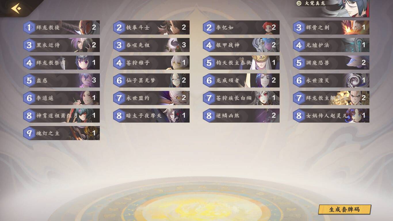拜龙教主解无尊,区区垫脚石,还不俯首称臣?阳之绝对核心,任何形态的阳都必带2,可以加上逆鳞肖红月进行otk。