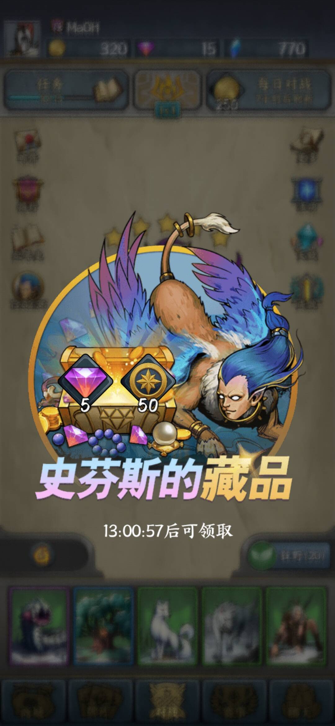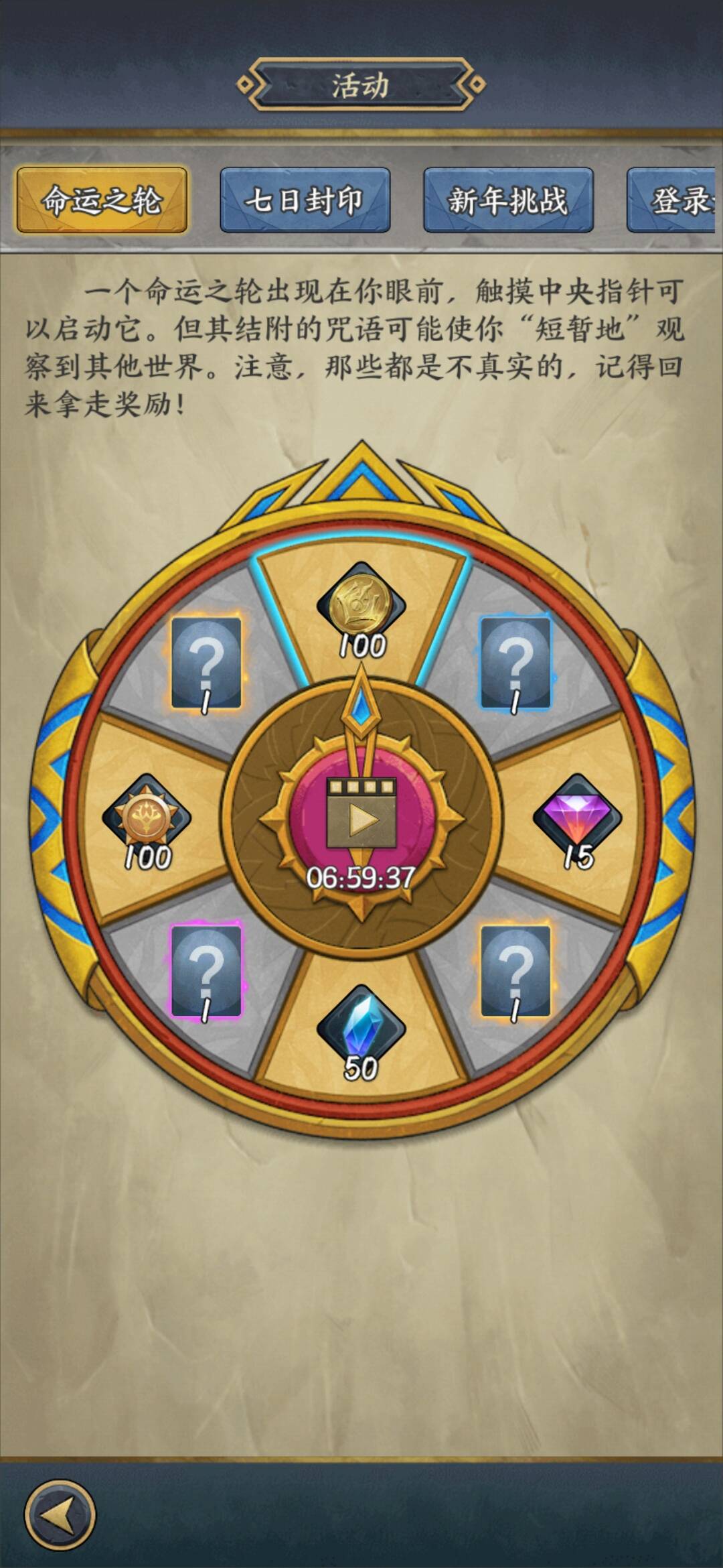 综上所述,完成常驻的每日活动,可以获得1000金币、25钻石、150混沌徽记、100荣誉值、40魔法晶石。光是金币就值两包卡了,在卡牌游戏里是非常优厚的福利了。