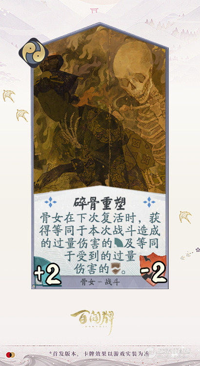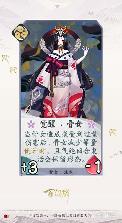 骨女在未觉醒时的形态牌处于一个与基础效果冲突的尴尬境地,觉醒牌不但解决了这一尴尬现状,并让骨女的复活难度骤然降低。
