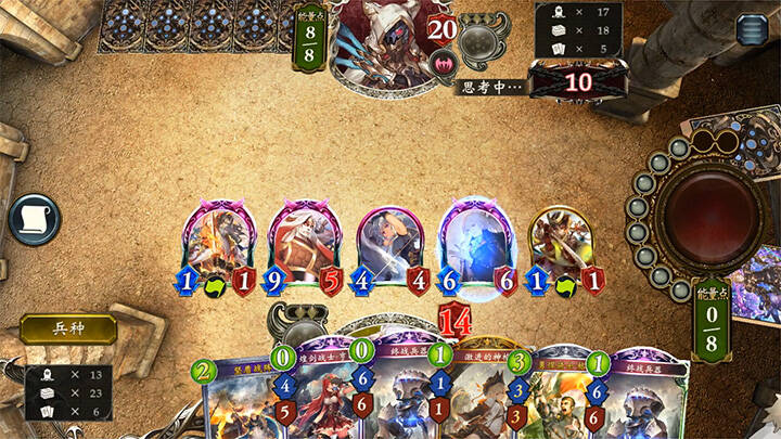 第5~6回合时,如果不需要寻找亨莉雅妲、奥克托等重要士兵,优先在有勇悍骑士·格尔德或协作7的诚实的盗贼的情况下使用白银的耀闪·艾蜜莉亚,否则优先使用其他更能抢节奏、省资源的打法,例如使用巴巴,或战争商人·阿尔亚斯卡+低费士兵。中期未使用的艾蜜莉亚可以留到使用奥克托后使用。