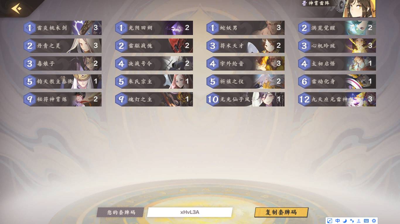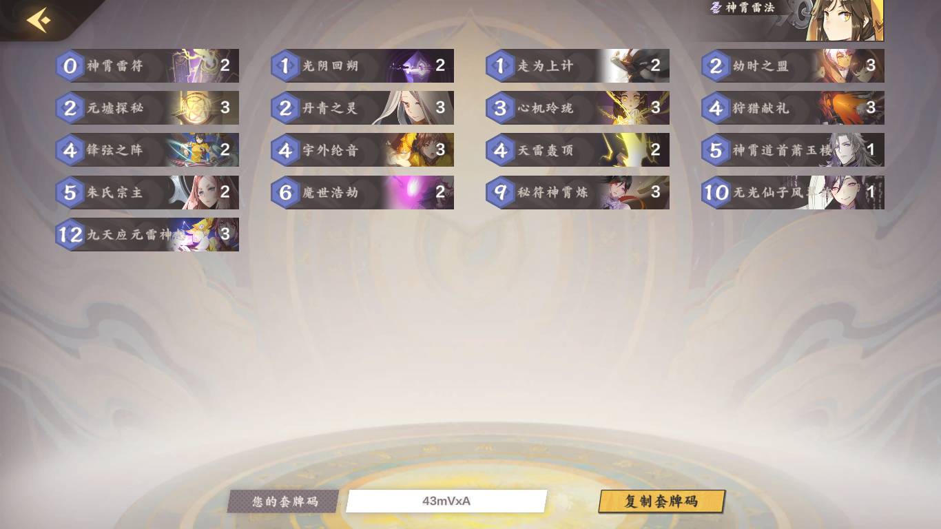 用《神霄盗祖萧红月》将当前手牌费用减为零。