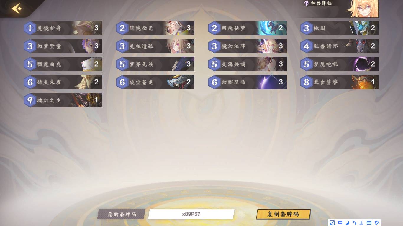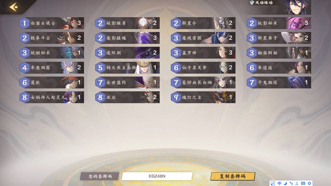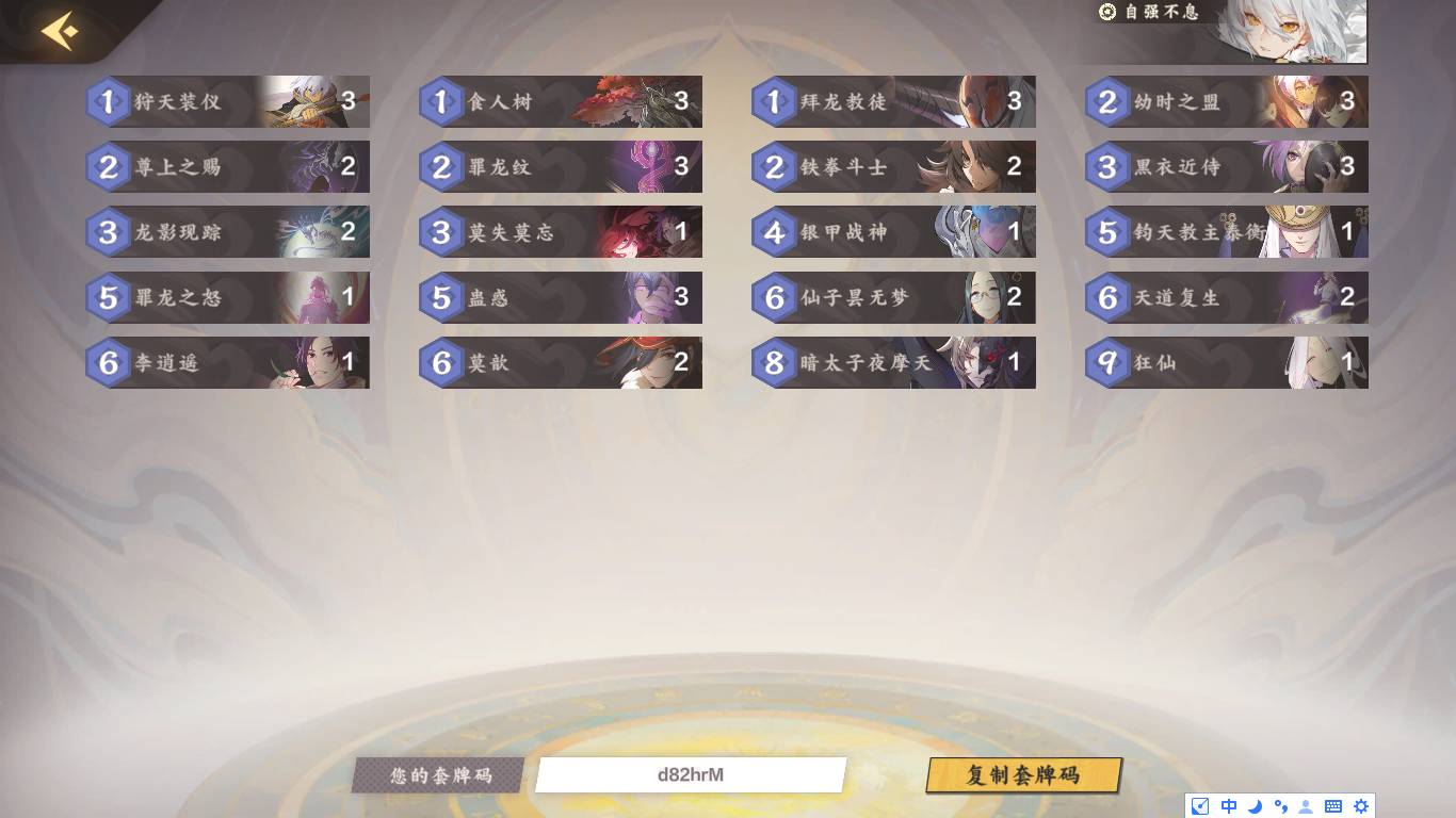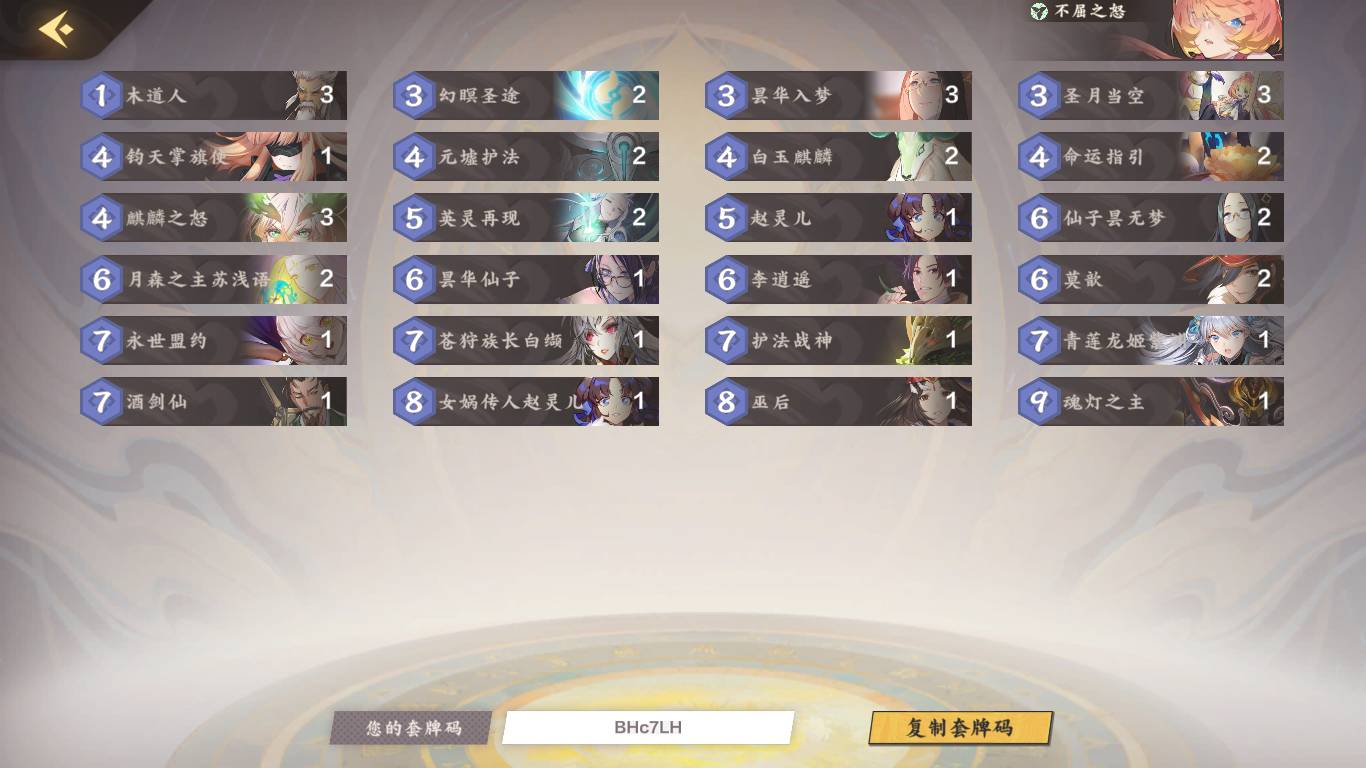 一费部署、二费部署、三费《无间战侣》、四费《决战号令》或《北辰武者》、五费《烈阳铁骑》、六费《天罗战司展擎空》。