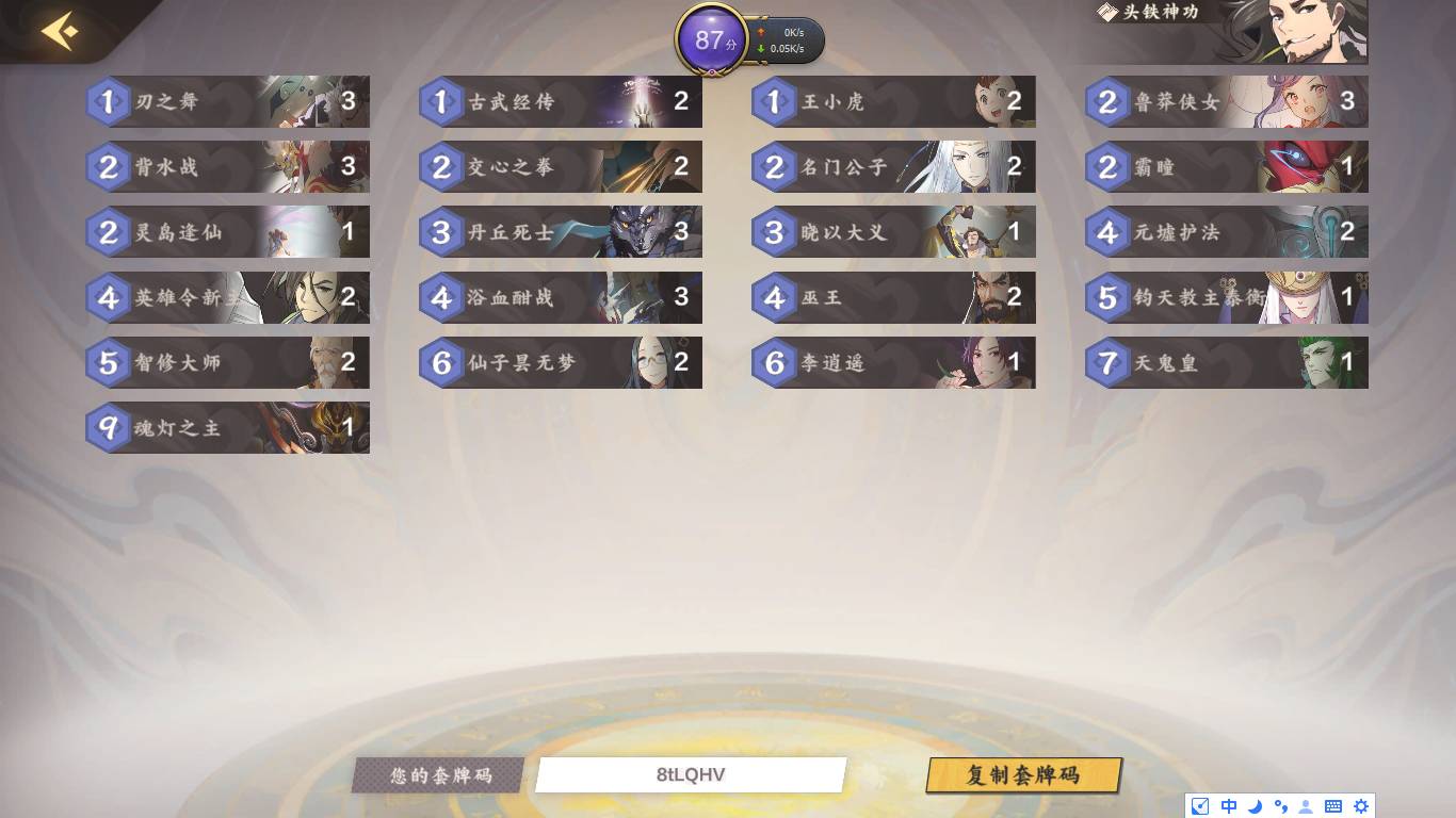 九野江湖兵器谱,以此十八个卡组为谱系。
