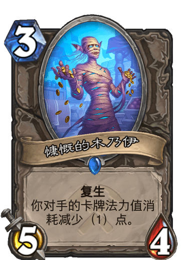 法老御猫——优点:费用低,适合前期过度,会给复生怪也能强化前期过渡阶段的场面能力 缺点:给的复生不稳定,可能会给慷慨的木乃伊这种zz或者月亮巨人守护者这种不太有机会能拍的出去的卡(手牌上限-1)