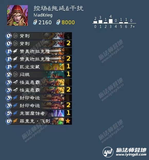 菲里克·飞刺——优点:一刀几命,在面对诸如小丑德之类的卡组时,能够隐性提升对局的胜率 缺点:费用高,会影响在博学者颠倒排序后入手克苏恩碎片的进度。同时,在当前版本,实用性也不那么高了(假使刺杀了小丑,对方也有可能使用亚煞极,污染之源重新获得一波小丑并于同一回合打出,治标不治本)