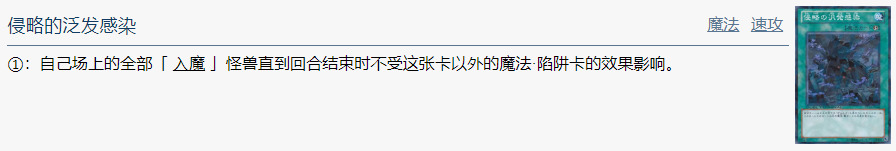 ①:自己场上的全部「 入魔 」怪兽直到回合结束时不受这张卡以外的魔法·陷阱卡的效果影响。