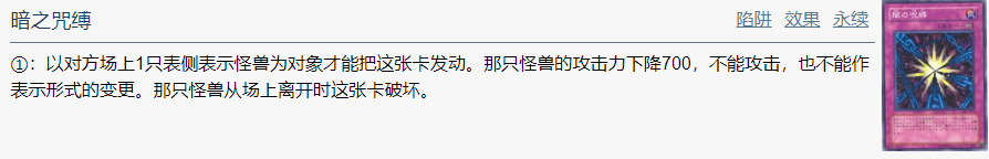 ①:以对方场上1只表侧表示怪兽为对象才能把这张卡发动。那只怪兽的攻击力下降700,不能攻击,也不能作表示形式的变更。那只怪兽从场上离开时这张卡破坏。