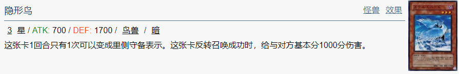 这张卡1回合只有1次可以变成里侧守备表示。这张卡反转召唤成功时,给与对方基本分500分伤害。