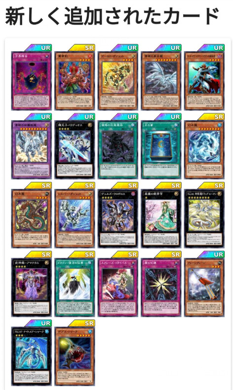 根据最近两个ex包的规律我们可以发现,最近,K社在最近的两个EX包“圣骑士EX”和“炎王ex”中,均是采用“现有卡+2新UR+2新SR”的模式,因此本人在这里大胆推断,12号即将发售的白龙EX2包很大概率也会满足这个规律,即“现有卡+2新UR+2新SR”的模式。
