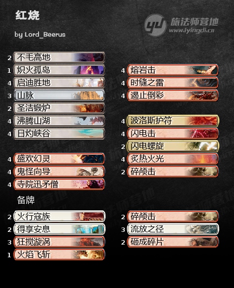 说实话我已经很久都没看到红烧了,甚至已经不太知道这牌应该构筑成什么样,不过我记忆中之前是不带满遏止倒彩的,闪电螺旋多一些,不过现在闪电螺旋确实挺差的就是了。